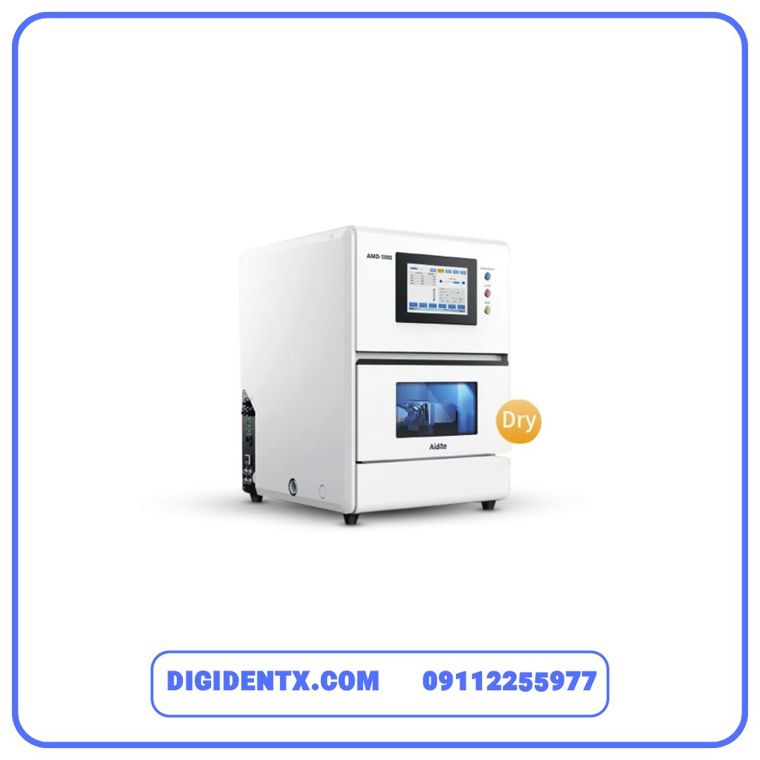Aidite AMD‑500S یک دستگاه فرز خشک (dry milling) پنج محور همزمان است که برای ساخت قطعات دندانی مثل زیرکونیا (zirconia)، PMMA، واکس (wax) و مواد نرمتر طراحی شده است. هدف اصلی آن تولید دقیق، سریع و پایدار پروتزهای دندانی (کراون، بریج، اباتمنت و غیره) با کیفیت سطح بالا است.